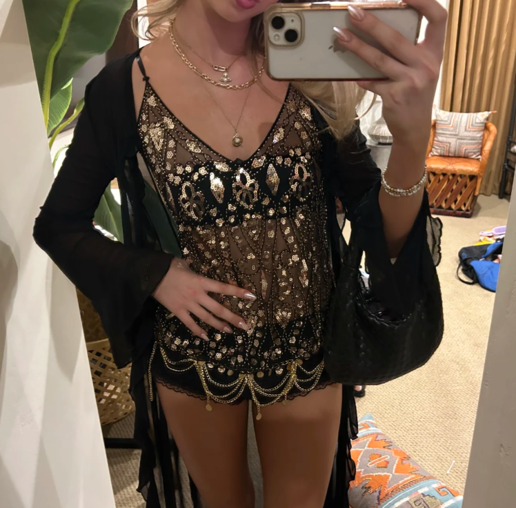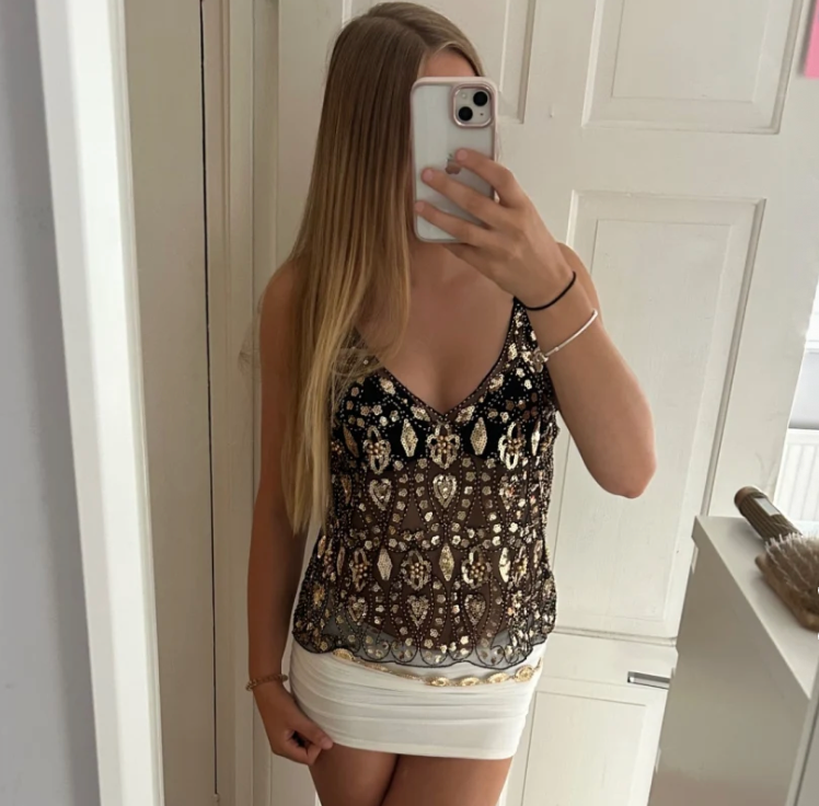 No — the sequins are attached to a soft mesh base that sits smoothly against the skin. Most customers say it feels more like a dressy camisole than a sequin piece.